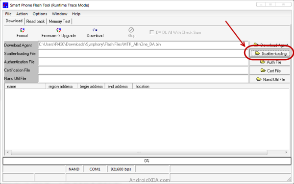 ৫. Scatter-loading এ ক্লিক করে scatter_emmc.text ফাইলটি সিলেক্ট করুন।