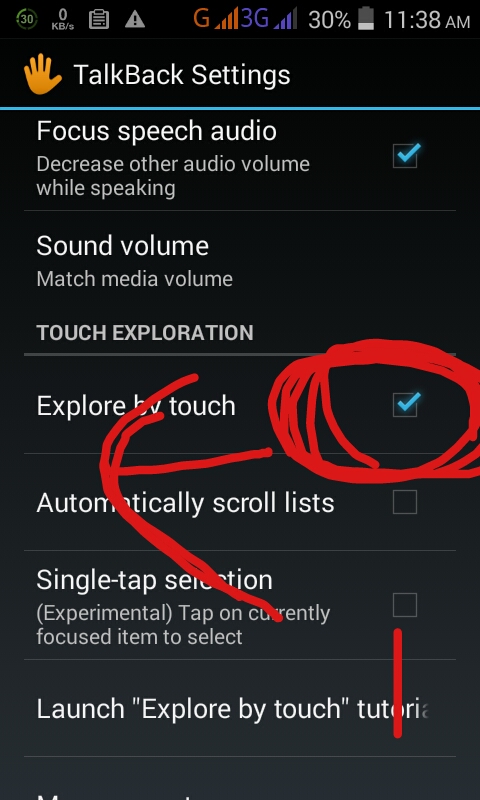 প্রথমে আপনি আমার ২টো আঙুল স্কিরিন এর উপর রাখুন, এবার ১টি আঙুল তুলুন,আরেক টি সঙুল স্কিরিন এর উপর রাখুন।এবার যে আঙুল টা তুলেছেন সেটা দিয়ে quick menu আনার চেষ্টা করুন।এবার সেখান থেকে সেটিং এ যান।গিয়ে tolk back option bondo kore dan.একই যাই গায় ২বারের বেশি ক্লিক।