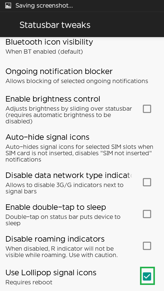 স্ক্রল (scroll) করে নিচে গিয়ে Use Lollipop signal icons এ টিক মারুন। টিক মারা হলে এবার আপনার সেটে একটা ঘুসি মারুন ! আরে না না মজা করলাম। এবার আপনার সেট রিস্টার্ট বা রিবুট অথবা সেট অফ করে অন করুন।