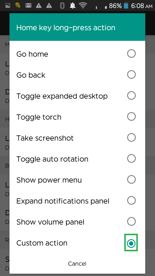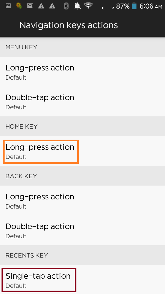 এখন আপনার সেটে যদি রিসেন্ট মেনু বাটন থাকে তবে Recent key, Single-tap action এ অথবা যদি রিসেন্ট মেনু বাটন না থাকে তবে Home Key, Long-press action সিলেক্ট করুন।