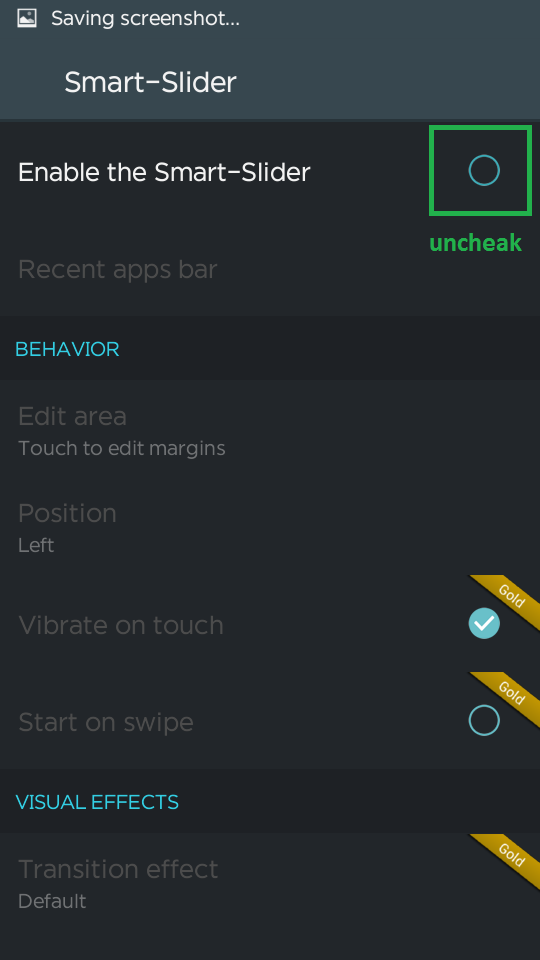 আবার সেটিংস এ যান। Smart-Slider এ ট্যাপ করে Enable Smart-Slider থেকে টিক উঠিয়ে দিন।