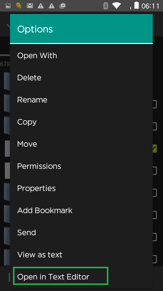 build.prop ফাইলটি হল্ড করে ধরে রাখলে যে মেনুটি আসবে তাতে Open in Text Editor সিলেক্ট করুন।