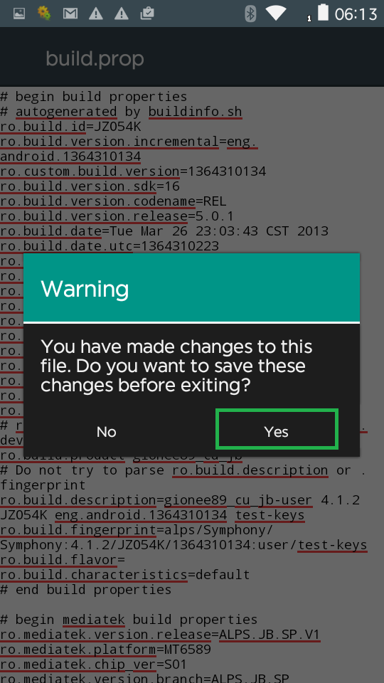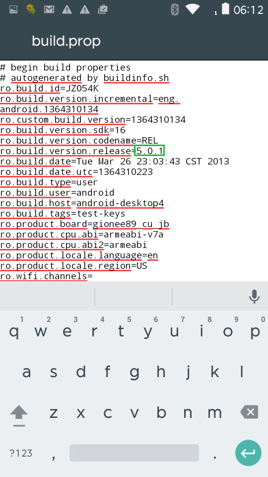 ro.build.version.release= এ আপনার আন্ড্রয়েড এর ভারশন লিখা থাকবে সেখানে গিয়ে লিখুন 5.0.1