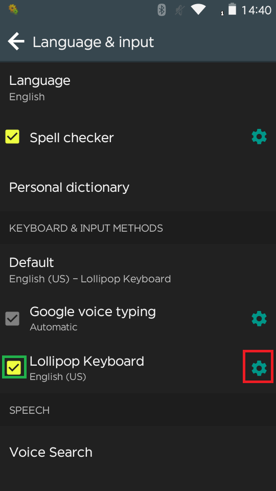 এবার Lollipop Keyboard এ টিক মারুন। Settings লোগো টাচ করুন।