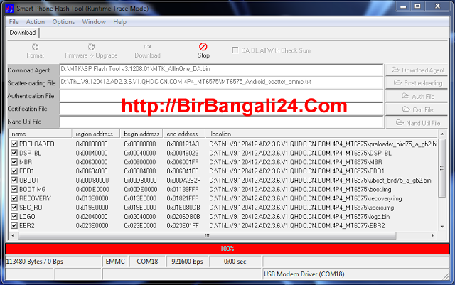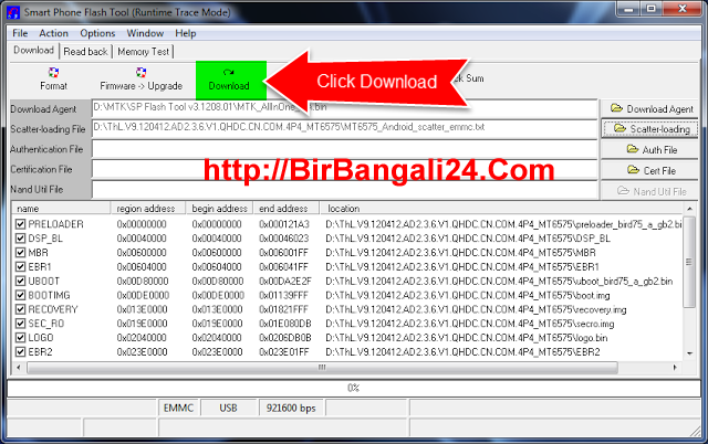- Scatter Loading হয়ে গেলে Download এ ক্লিক করুন। এখন ফোন বন্ধ করে ব্যাটারি খুলে পিসিতে USB দিয়ে কানেক্ট করে সাথে সাথে Volume Up বাটন চেপে ধরে রাখুন।