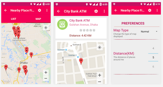 অ্যাপটিতে ব্যবহারকারী তার ইচ্ছামতো দূরত্ব ঠিক করে দিতে পারবে। যে দূরত্বের মধ্যে সে তার নির্দিষ্ট স্থান খুঁজতে চায়। অ্যাপটিতে রয়েছে চার প্রকার ম্যাপ। আপনার ইচ্ছামত যেকোন প্রকার ম্যাপ ব্যবহার করতে পারেন।