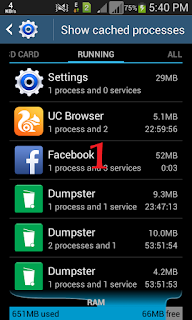যা থেকে ব্যবহারের পর বেরিয়ে আসালেও গোপনে চালু থেকে যায়। এই চালু থাকা এপ্লিকেশন বেশী হয়ে গেলে বা বেশিক্ষণ থেকে চালু থাকলে মোবাইলে হ্যাং থেকে শুরু করে অনেক ধরনের সমস্যা দেখা দেয়। তাছাড়া আমাদের অজান্তে মোবাইলে অনেক ধরনের এপ্লিকেশন অটো চালু হয়ে যায়, যা আমরা মোবাইলের সেটিং এপ্লিকেশন থেকে Running এ গেলে দেখতে পারবো। যার একমাত্র সমাধান রিস্টার্ট!!!