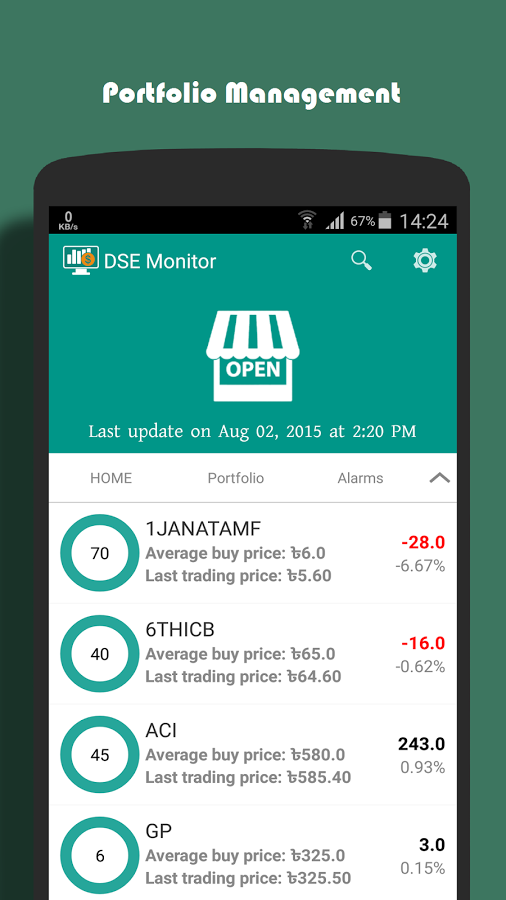 DSE Monitor ঢাকা স্টক এক্সচেঞ্জের সঠিক এবং আপডেটেড রিয়েল টাইম তথ্য প্রদানে একটি স্মার্টফোন অ্যাপ্লিকেশন