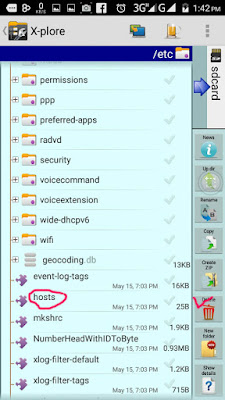 ৬। hosts ফাইল ডিলিট করা (For rooted users only): অনেক সময় উপরের ধাপ গুলিতে কাজ নাও হতে পারে। সে ক্ষেত্রে আপনি যদি এক জন রুটেড ইউজার হোন তাহলে আপনার জন্য খুবই সহজ এবং ১০০% কার্যকরী একটি পদ্ধতি হল hosts ফাইল ডিলিট করা। এর জন্য রুট এক্সেস করতে পারে এ রকম একটি ফাইল ম্যনেজার লাগবে। এ রকম অনেক ফাইল ম্যনেজার রয়েছে যেমনঃ root explorer, root file manager, ES file explorer, X-plore etc ইত্যাদি। তো আজকে আমি X-plore ব্যবহার করব। এর জন্য নিচের ধাপ গুলি অনুসরন করুন