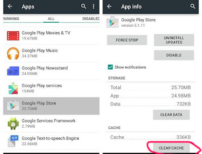 Settings > Apps > Google Play Store > Clear Cache