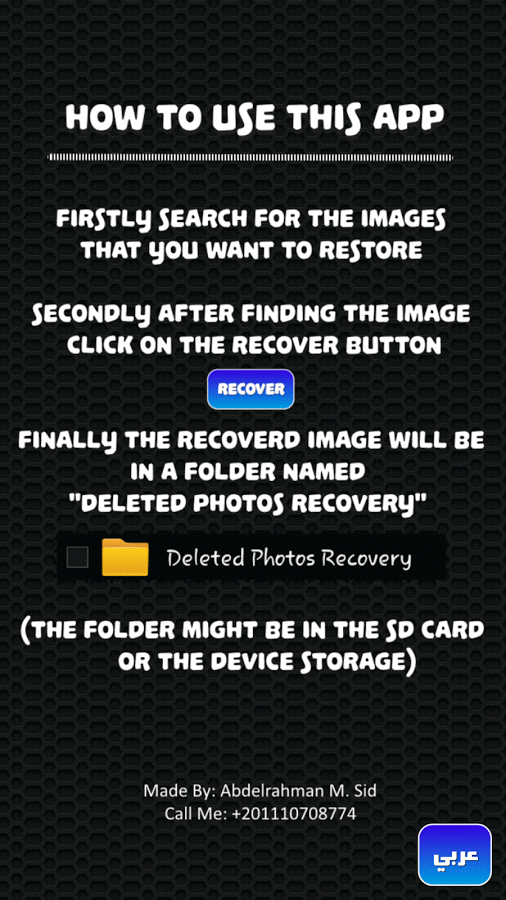 আজকে আপনাদের সাথে যে ট্রিক বা অ্যাপটি শেয়ার করব। সেটি দিয়ে আপনি আপনার মোবাইলের মুছে যাওয়া ছবি ফিরিয়ে আনতে পারবেন। সেটার জন্য আপনাকে যটিল কোন কাজ করা লাগবে না। শুধু মাত্র Android Photo Recovery Pro অ্যাপটি ডাউনলোড করে নিতে হবে। ডাউনলোড করতে এখানে ক্লিক করুন। এরপর কিভাবে ধাপে ধাপে কাজ করবেন তা দেখুন স্ক্রিনশট -