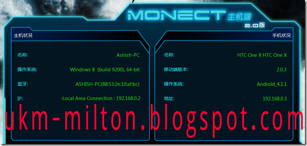 তার পর আপনার পিসি তে Monect Portable রান করলে নটকানেক্ট এর যায়গায় আপনার ফোন এর সব ওয়াইফাই ইনফরমেশন চলে আসবে।