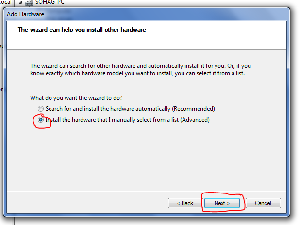 এখান থেকে "Install the hardware that I Manually select from a list (Advance) " অপশন টি মার্ক করে Next এ ক্লিক করুন।