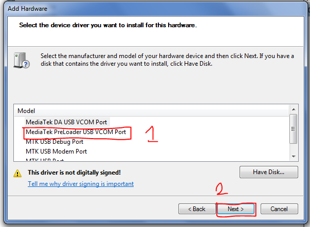 এবার এখান থেকে MediaTek preloader USB VCOM PORT সিলেক্ট করে Next এ ক্লিক করুন।