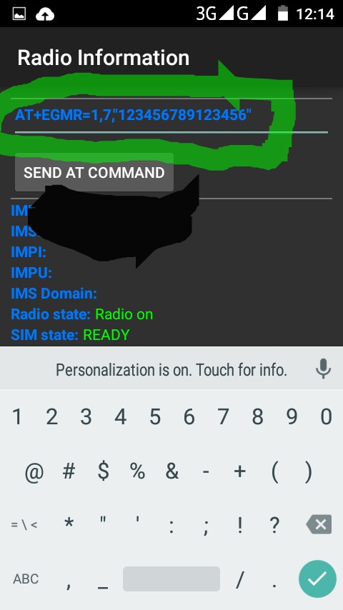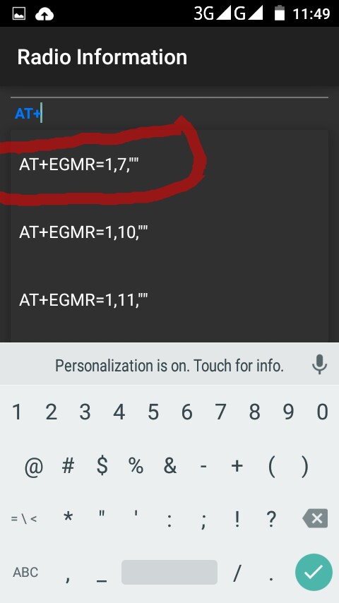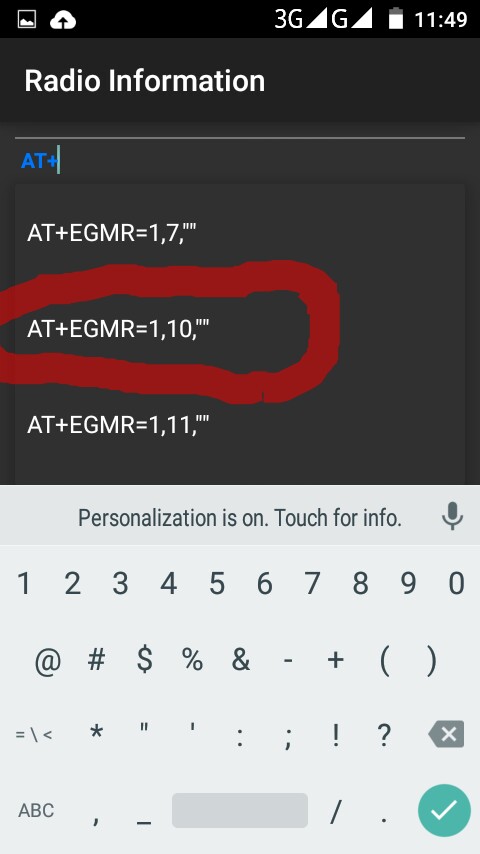 8. Insert the + again (You will see some suggestions select 1st suggestion AT+EGMR=1, 7, "")