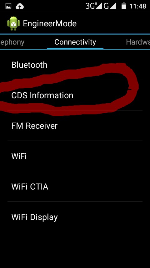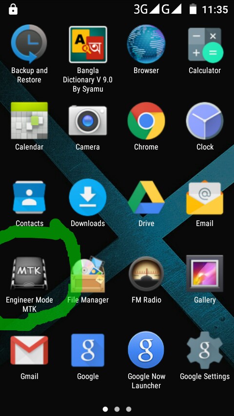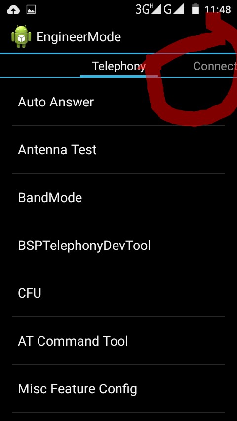 1. Open Phone Dialer and enter *#*#3646633#*#*. By entering this you will enter 'Engineer Mode' of the device.