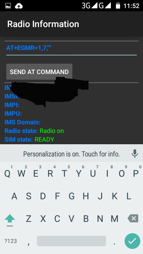 example : AT+EGMR=1, 7, "1XXXXXXXXXXXXX15"