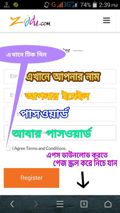 রেজিস্টার করতে ফোন থেকে ইউসি ব্রাউজার ব্যবহার করুন।