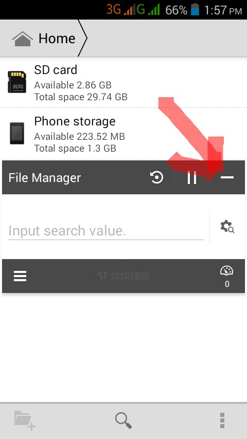 চিত্রের মত এরকম দেখাবে। এটা গেম হ্যাকারের মুল মেনু। এরপর তীর দেয়া স্থানে ক্লিক করুন। দেখবেন এপটি মিনিমাইজ হয়ে গেছে এবং ডিসপ্লেতে একটি "রেঞ্চ" এর আইকন আসছে। এই আইকন টাকে আপনি স্ক্রিনের যেখানে খুশি সেখানে রাখতে পারবেন।
