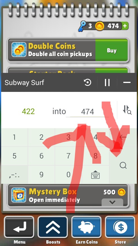 আমি নিজে গেমটি কিছুক্ষন খেলেছি এবং কিছু কয়েন বাড়িয়েছি। আগে ছিল ৪২২টা, এখন ৪৭৪টা হয়েছে। এখন গেম হ্যাকার ক্লিক করে চিত্রে দেখানো স্থাবে ৪৭৪ লিখুন এবং সার্চ বাটনে ক্লিক করুন।