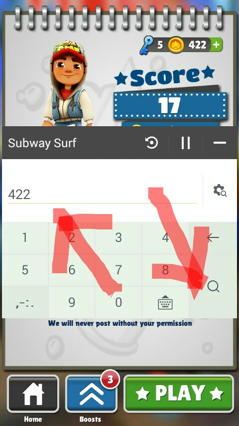 এবার আপনি কোন একটি গেম খেলা শুরু করুন। আমি এখানে "SUBWAY SURFERS" নামের একটি গেমের স্ক্রিনশট শেয়ার করছি আপনাদের সাথে।