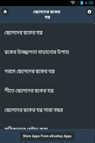 তাঁরপর ও যারা একটু বেশী যত্নবান তাদের জন্য এই টিউনটি, যাই হোক ভাই এতো তথ্য দিয়ে পারব না, কারন ত্বকের জন্য অনেক টিপস আছে। আমি শুধু শিরনাম গুলা ভলে দিচ্ছি আপনারা এপ নামিয়ে বিস্তারিত পড়ে নিয়েন।