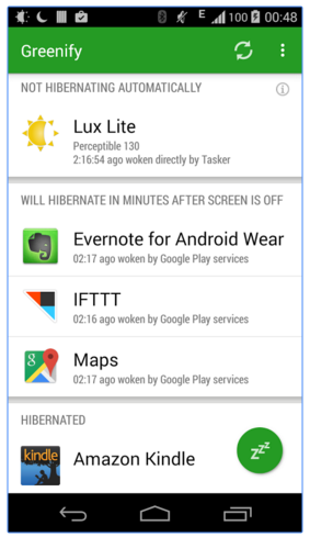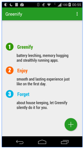 ৬. এবার আপনার ফোনটি পারফরমেন্স মুডে চলে যাবে। লক্ষ্য করুন এবার আমরা ব্যাটারি যাতে খুব বেশি খরচ না হয় সেদিকে লক্ষ্য রাখব। প্লে স্টোর থেকে Greenify অ্যাপটি নামিয়ে নিন। ইন্সটল করে রুট অ্যালাউ করে প্লাস বাটনে ক্লিক করুন। এবার রিসোর্স ইন্টেন্সিভ অ্যাপ গুলো সিলেক্ট করে ZzzZ বাটনে ক্লিক করুন। কাজ শেষ চিত্র দেখুন।