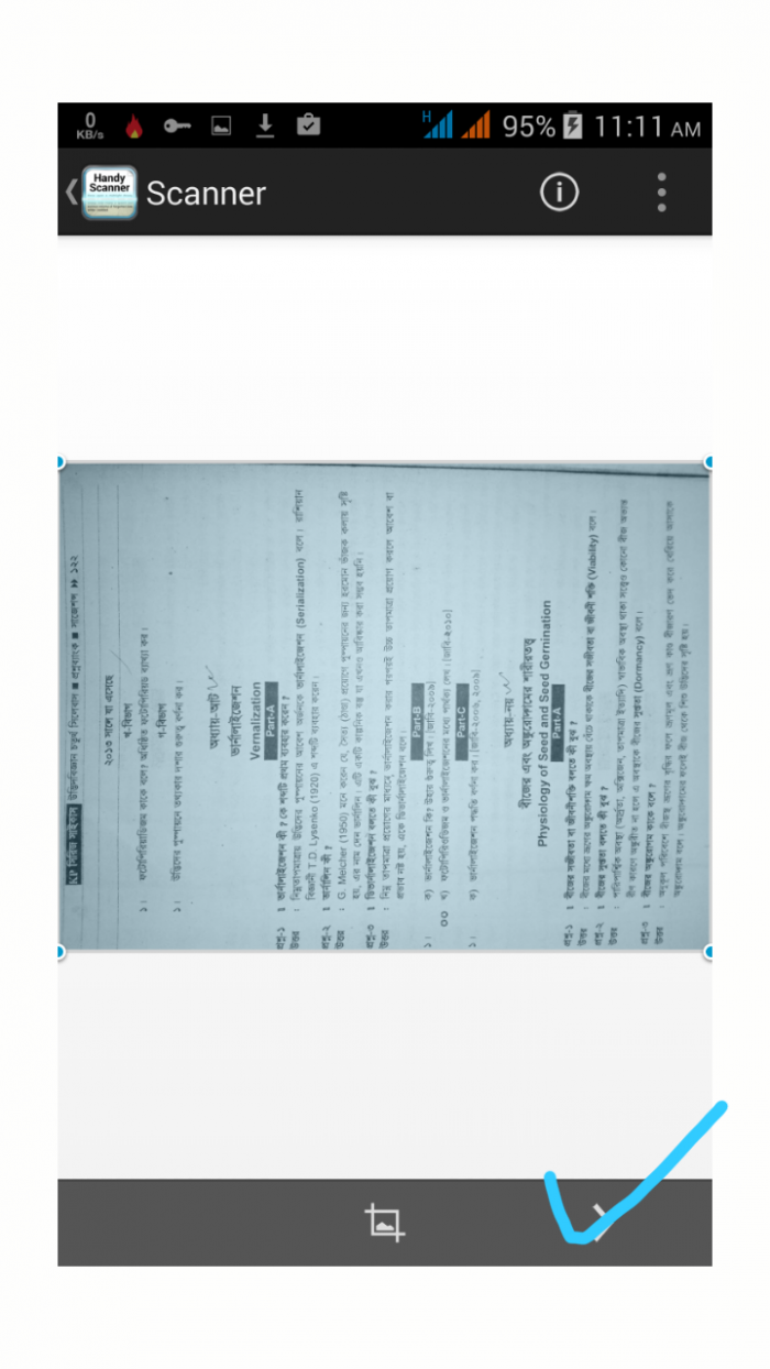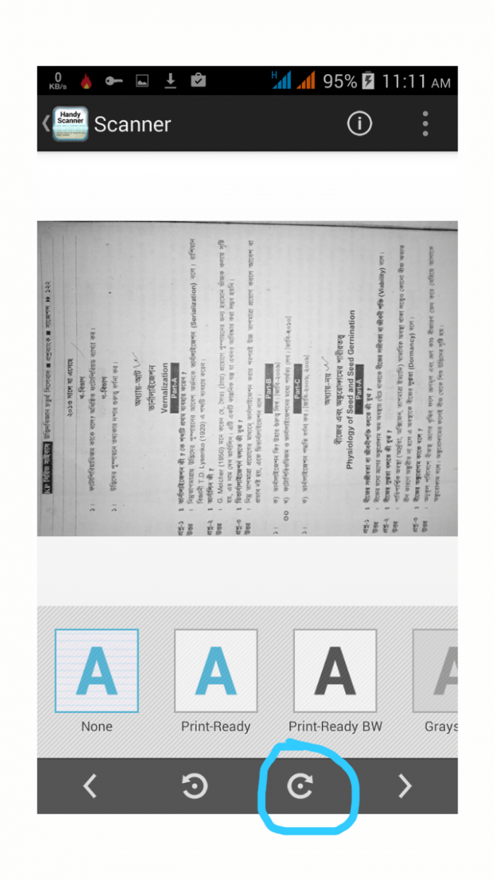 ছবি গুলো এবার হ্যান্ডি স্ক্যানারে ওপেন হবে। এখন Next বাটন চাপুন। ছবি গুলো যদি আগে থেকে সোজা থাকে তো ভালো তা না হতে আপনি আপনার প্রয়োজনীয় অংশ সিলেক্ট করে নেবার পর। রোটেশন বাটনের সাহায্য ছবি গুলো সোজা করে নিতে পারেন।