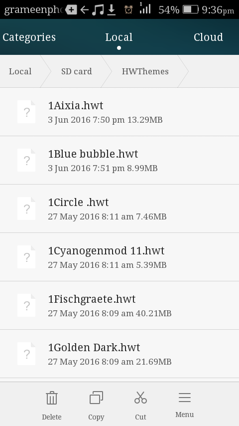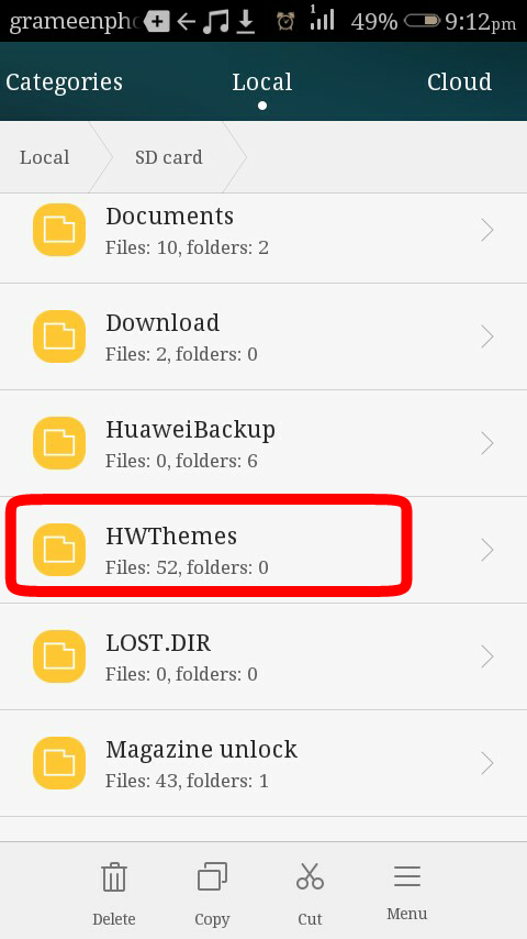 ২. এবার যেকোনো একটি ফাইল ম্যানেজার ওপেন করে ডাউলোড করা .hwt ফাইল গুলো Hwthemes ফোল্ডারে move/copy করুন।