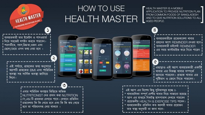 এই সমস্যাটির সমাধানই করছে একটি বাংলাদেশী অ্যান্ড্রয়েড অ্যাপ Health Master. অন্যান্য বিদেশী অ্যাপে দেখা যায় খাবারের তালিকা হিসেবে সিরিয়াল, বার্গার, চোওমিন, সুশি ইত্যাদি দেওয়া থাকে। কিন্তু এগুলো আমাদের দেশে কম পাওয়া যায় এবং পেলেও তা খাবার সামর্থ্য সবার থাকেনা। তাই এই অ্যাপটি সাজানো হয়েছে বাংলাদেশে সহজে পাওয়া যায় এমন সব খাবার নিয়ে। চলুন দেখে আসি এই অ্যাপটির কিছু ফিচারস।