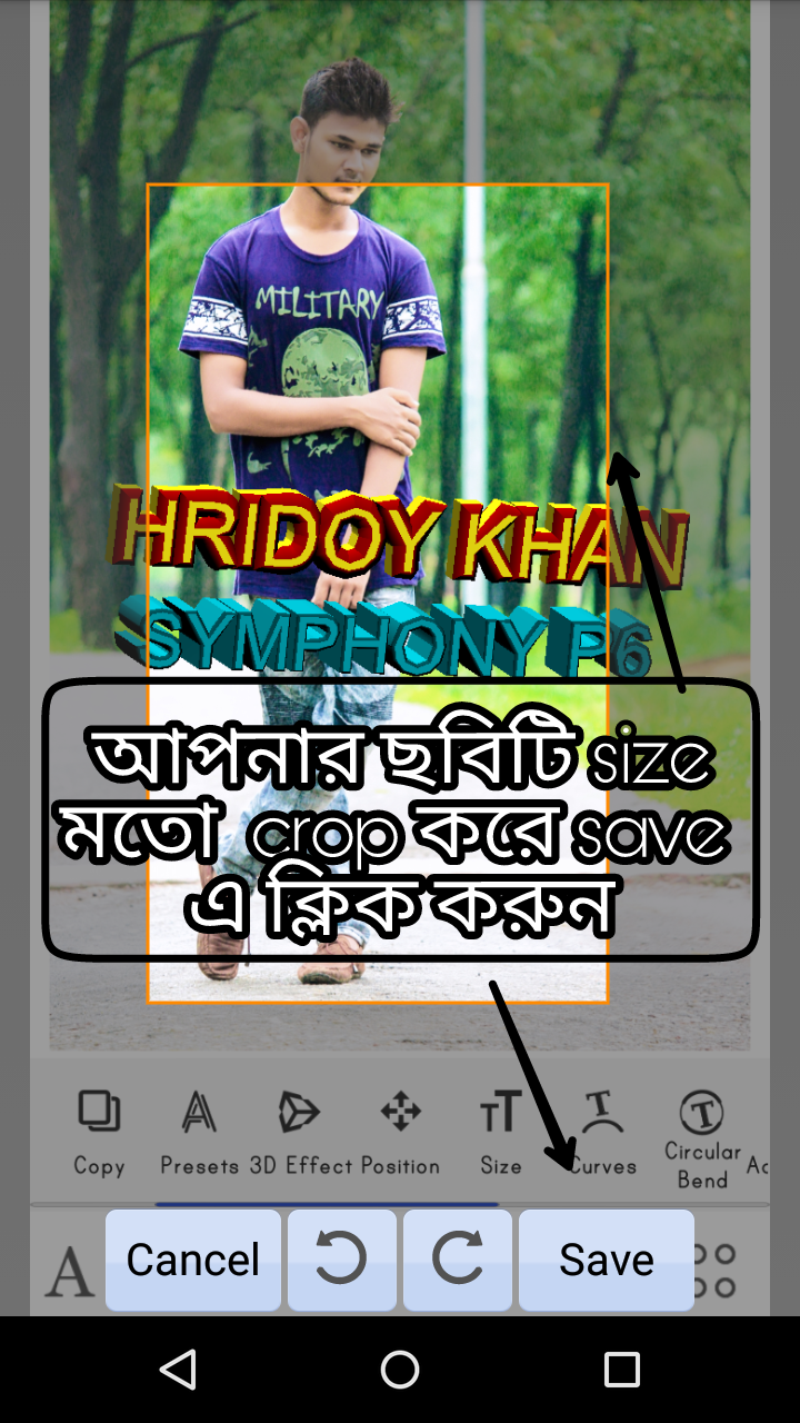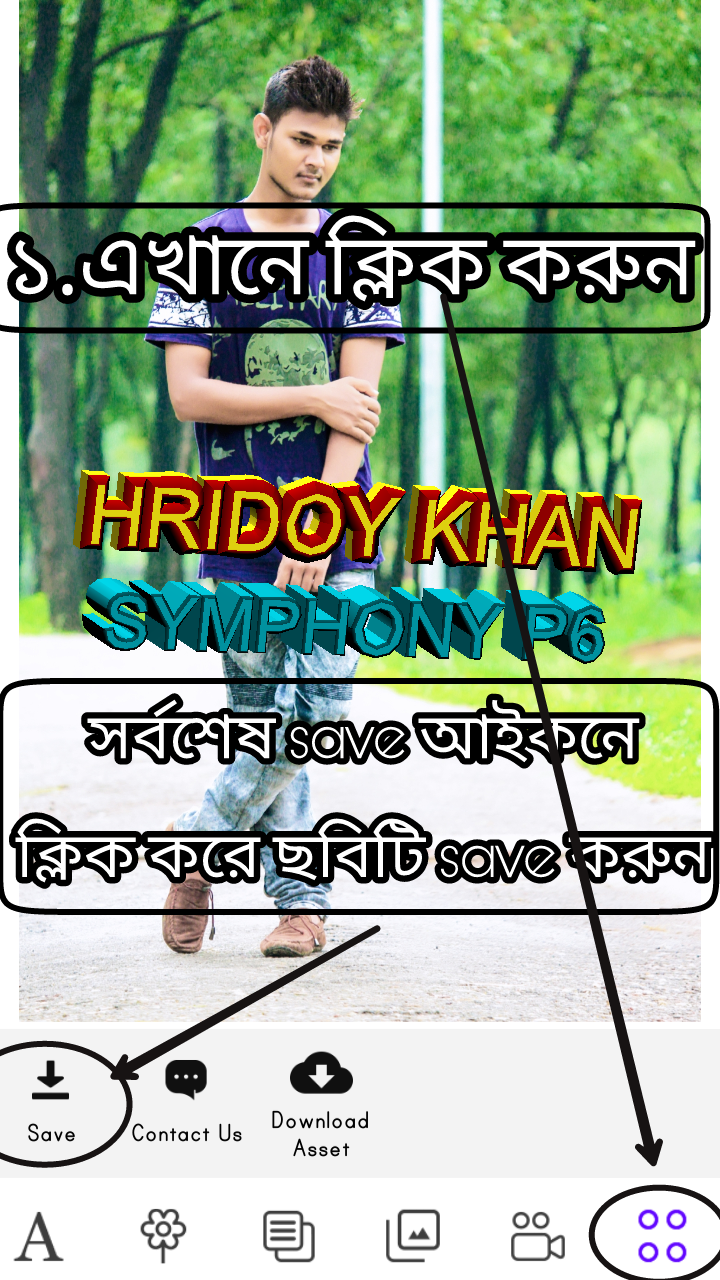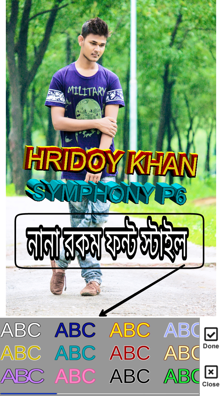 যে লেখাটি Style করতে চান,আগে তার উপরে আঙ্গুল দিয়ে টাচ করে তারপর ফন্ট সিলেক্ট করবেন। ফন্ট সিলেক্ট করা শেষ হলে Done এ ক্লিক করুন।এবার ছবিটি Save করতে হবে এ জন্য নিচের ছবিটি দেখুন।