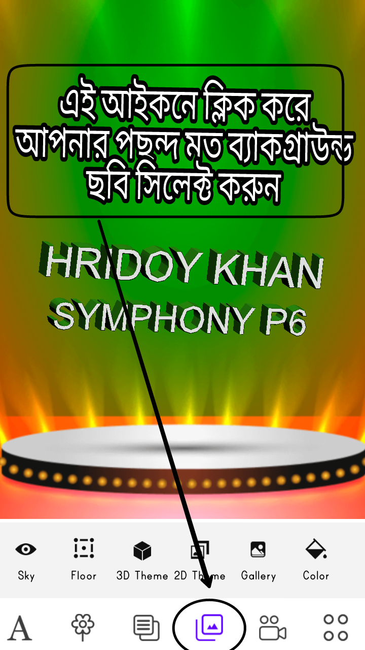 3D আইকনে ক্লিক করলে একটা বক্স আসবে ওখানে প্রথমে আপনার নাম লেখে done বাটনে ক্লিক করে,আবার 3D বাটনে ক্লিক করে আবার আপনার ফোনের নাম লেখে done বাটনে ক্লিক করবেন।এবার লেখার পিছনে আপনার ছবি দিতে নিচের ছবিটি দেখুন,