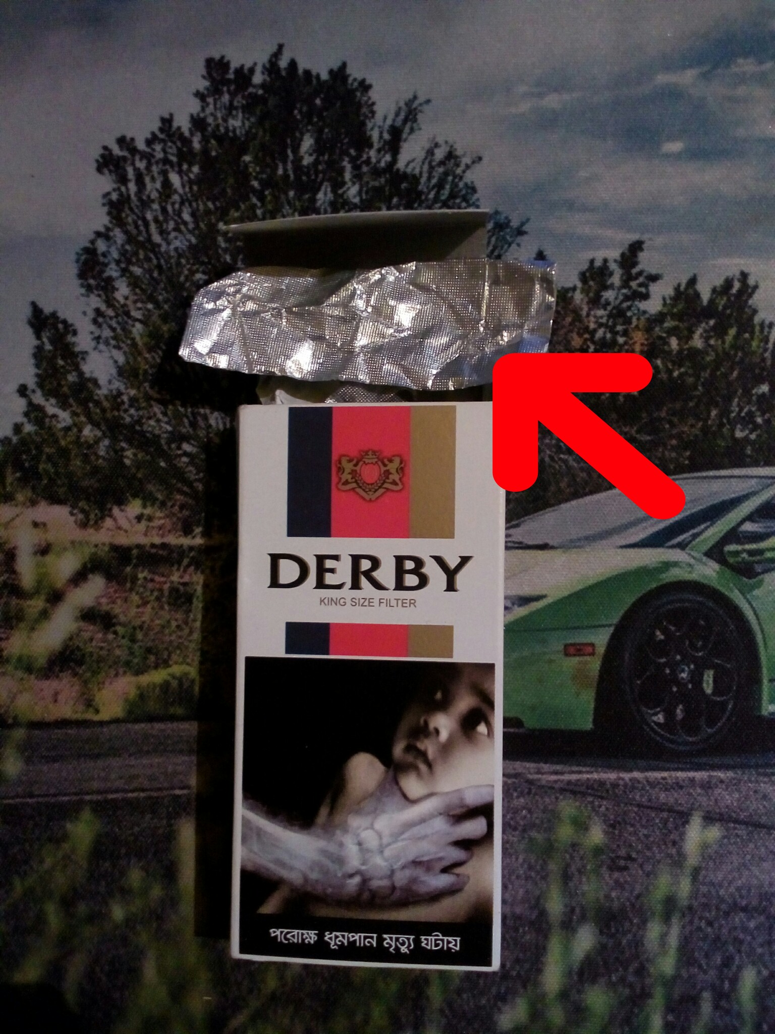 ১. সিগারেট এর পাকেট নিবেন। এবং একটি চকচকে কাগজ দেখতে পাবেন।