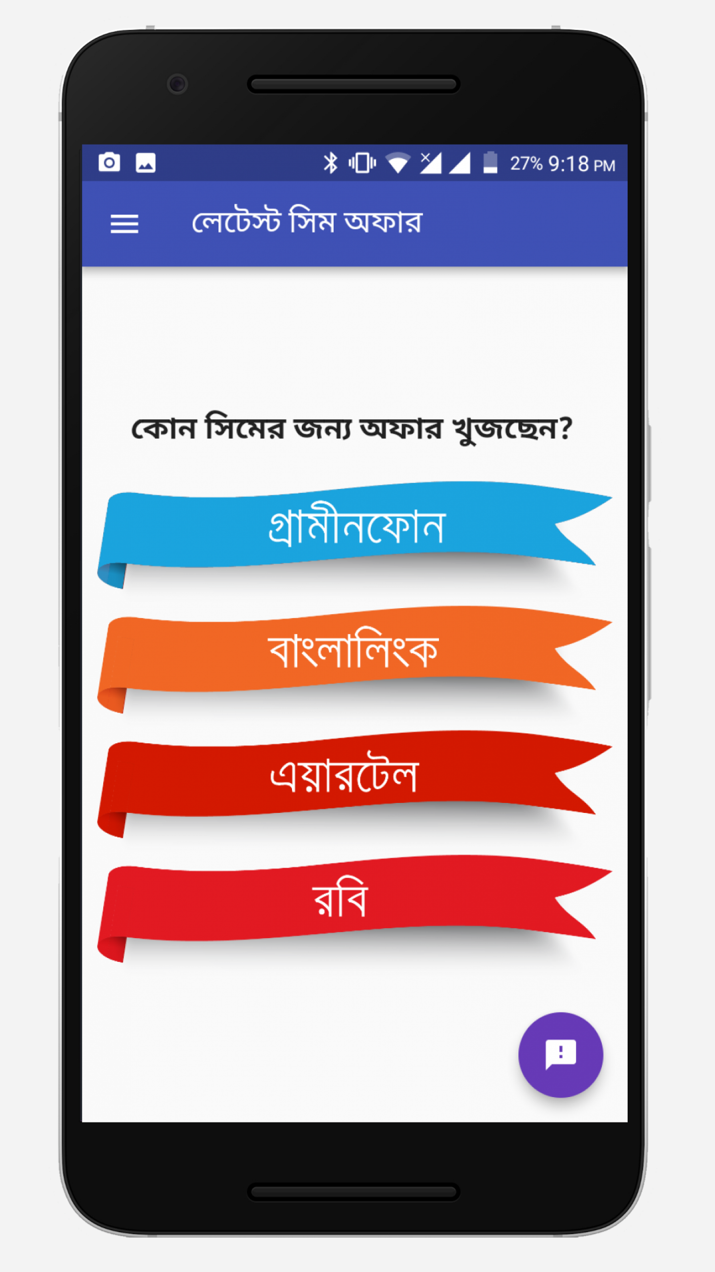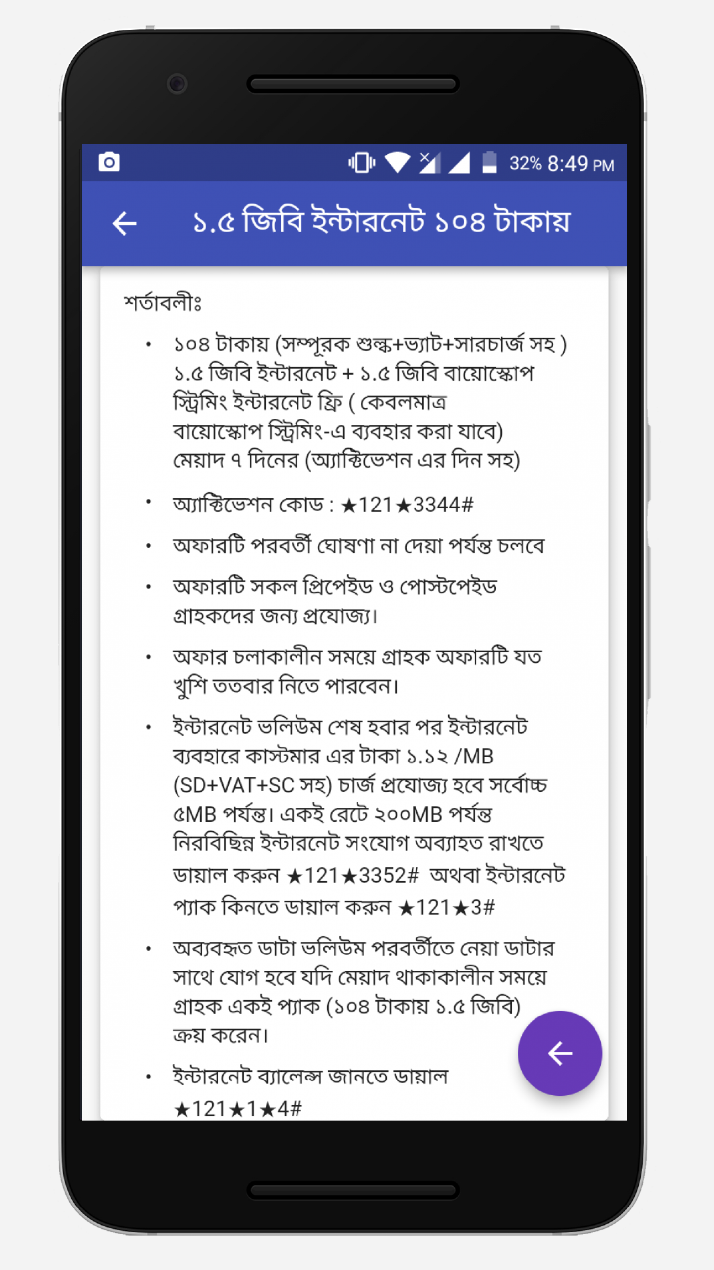 এই অ্যাপ টির মূল উদ্দেশ্য হচ্ছে গ্রামীণফোন, বাংলালিঙ্ক, এয়ারটেল এবং রবি সিম এর সর্বশেষ অফার গুলো আপনাদের কাছে পৌঁছে দেওয়া। এই অ্যাপ এর রয়েছে ক্লিন এবং সহজ ইন্টারফেস যা আপনার ভাল লাগবেই! এই অ্যাপ এর মাধ্যমে শুধু সর্বশেষ অফার গুলো পাবেন। যেই অফার গুলো বাতিল হয়ে যাবে সেগুলো আমরা আমাদের ডাটাবেস থেকে মুছে দিবো যার ফলে শুধু মাত্র নতুন অফার গুলোই আপনি দেখতে পাবেন। আস্তে আস্তে আমরা এই অ্যাপ টি আরো উন্নত করবো। যদি অ্যাপ সম্পর্কে আপনার কোন মতামত থাকে, তাহলে অবশ্যই আমাদেরকে জানাবেন। আমাদের অ্যাপ ব্যবহার করে যদি সত্যিই উপকৃত হোন, তাহলে ভালো রেটিং এবং বন্ধুদের সাথে শেয়ার করবেন।