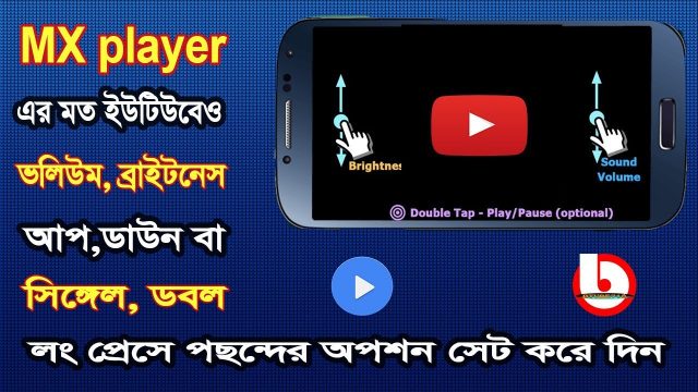 তো তার জন্য আপনার ছোট একটা অ্যাপের সাহায্য নিতে হবে নামটা হচ্ছে "Touch Control for Youtube" প্লে স্টোরের লিঙ্কটা এখনই দিচ্ছি না একটু ধৈর্য ধরেন, 3 টা অ্যাপের পুরা প্যাকেজ লিংকটাই আপনাকে দিচ্ছি।
