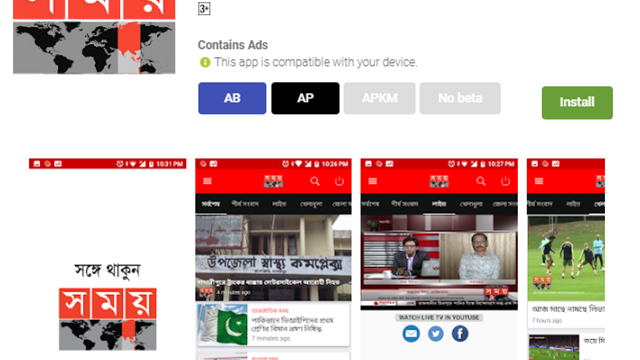 বাংলাদেশের অন্যতম জনপ্রিয় একটি নিউস চ্যানেল। তাদের একটি অ্যাপস আছে যার মাধ্যমে আপনি শুধু সময় টিভির নিউসগুলোই পড়তে পারবেন। অন্যকোনো পত্রিকা এই অ্যাপসের মধ্যে খুঁজতে গেলে সেটা বৃথা হবে আপনার জন্য। দর্শকের বিচারে অ্যাপসটি এপর্যন্ত ৫ এর মধ্যে ৪.৩ রেটিং অর্জন করতে পেরেছে। (অ্যাপসটির ডাউনলোড লিংক : Download)