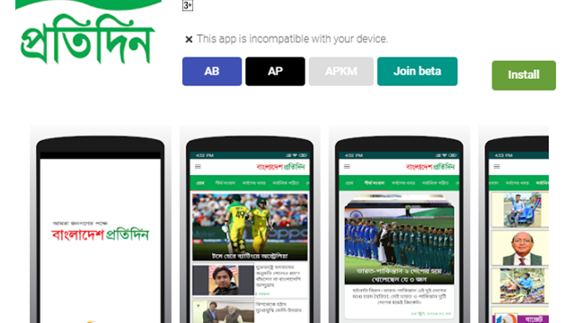 এই অ্যাপসটি তৈরি করেছে BD Apps24 নামের একটি প্রতিষ্ঠান। এই অ্যাপসের মাধ্যমেও আপনি পত্রিকা পড়তে পারেন। অ্যাপসটি তার রিডারের কাছ থেকে ৫ এর মধ্যে ৪.৫ রেটিং অর্জন করতে সক্ষম হয়েছে। অ্যাপসটি ৫০ হাজার বার প্লেস্টোরে ডাউনলোড হয়েছে। (অ্যাপসটির ডাউনলোড লিংক : Download)