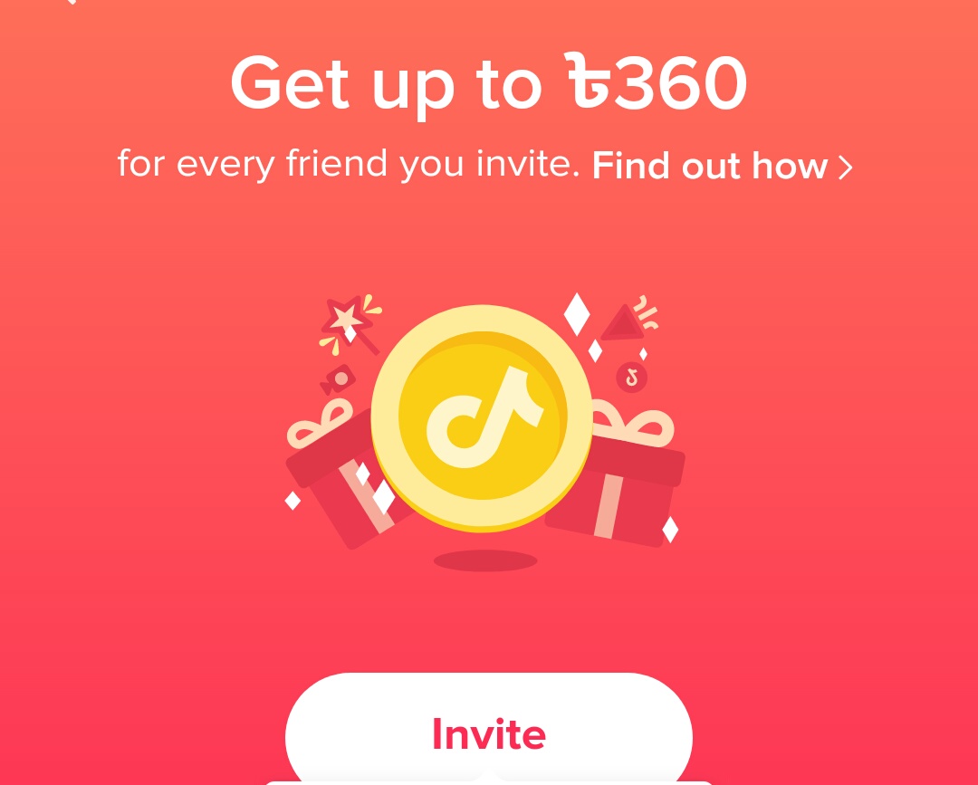 টিকটক আপনাকে রেফার করার জন্য টাকা দিবে প্রতিরোধ করার জন্য আপনি পাবেন 160 টাকা আপনার রেফার কোড ইউজ করে কেউ যদি টিক টক অ্যাপ টি ইন্সটল করে আর একটা অ্যাকাউন্ট তৈরি করে | আপনার রেফার কোড ইউজ করার জন্য তাকে 1000 পয়েন্ট দিবে মানে বিস্ টাকা আর আপনি সাথে সাথে পেয়ে যাবেন 20 টাকা | আপনার দেওয়া রেফার কোড টি যখন কেউ ক্লিক করবে তার সামনে ঠিক এরকম একটি দৃশ্য হবে তারপর টকটক আপনাকে 3:28 দেবে সেগুলো আপনাকে পূরণ করতে হবে প্রথমটা হল | আর যদি আপনার এই টিকটক একাউন্ট দিয়ে কেউ কোনদিন ভিডিও দেখে আপনি পাবেন 100 টাকা এটার লিঙ্ক আপনি শেয়ার করতে পারেন ফেসবুকে আপনার এনাদার মেসেঞ্জারে তারপরে যারা এ ক্লিক করে আপনার ফ্রেন্ড