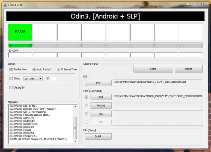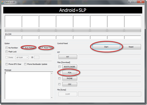 • এবার ওডিন নামের ফ্ল্যাশিং সফটওয়্যারটি চালু করুন। ID:COM এর প্রথম ঘরটি হলুদ রঙে দেখালে মনে করবেন ওডিন আপনার ডিভাইসকে সনাক্ত করেছে।