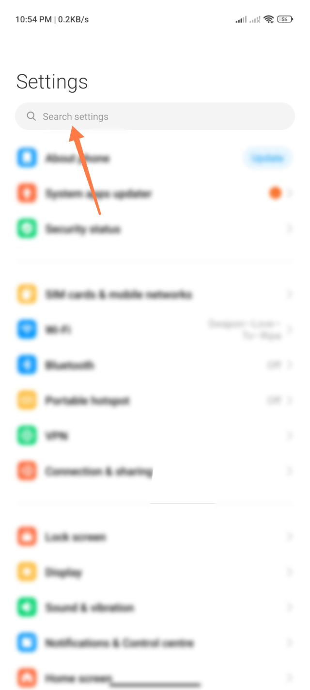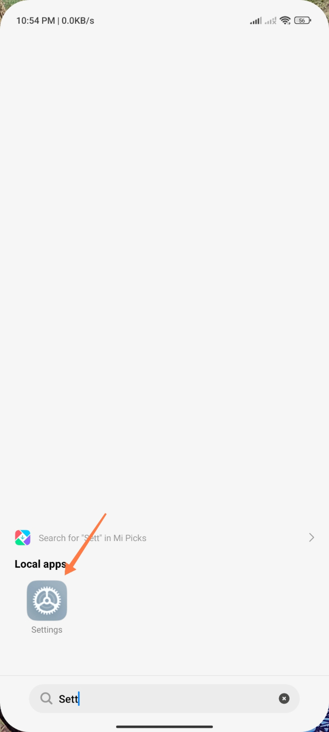২. এবার আপনারা আপনাদের সেটিং অপশনে প্রবেশ করুন আর সেটিং সার্চ অপশনে ক্লিক করুন।