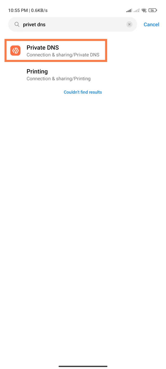 ৩. তারপর সেটিং সার্চ অপশনে লিখুন Privet DNS তারপর আমার দেখানো অপশনে ক্লিক করবেন। এক্ষেত্রে একেক ফোনে একক রকম ভা ভিন্ন রকম হতে পারে। তবে সকল ফোনেই অবশ্যই Private DNS অপশন পাবেন।