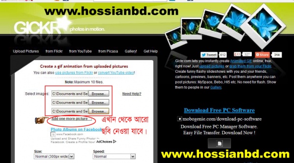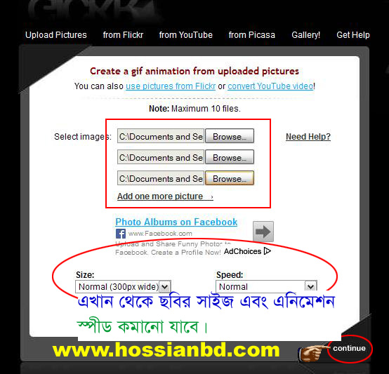 এবার Browse বাটনে ক্লিক করে আপনার ছবি দেখিয়ে দিন, আমি আমার তিনটি ছবি সিলেক্ট করেছি আপনি যে কোন ছবি নিতে পারেন কিন্তু ১০টির বেশি গ্রহণ যোগ্য হবে না।
