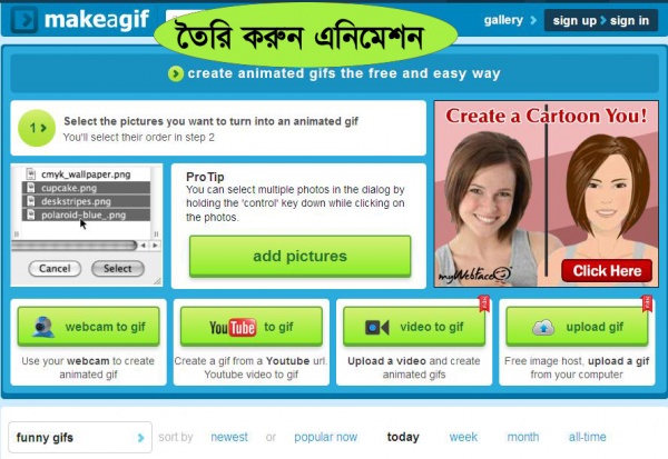 GIF ইমেজ তৈরি করতে এখানে ক্লিক করুন, তাহলে নিচের মত একটি পেজ চালু হবে।