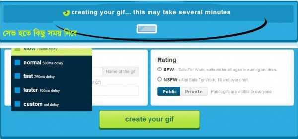 এখন এনিমেশন তৈরির জন্য Create your gif বাটনে ক্লিক করুন।