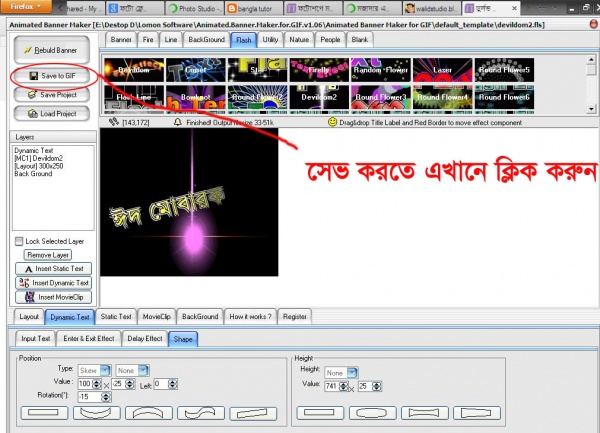 এবার Banner, Fire, Line, Backgroun, Flash ইতাদি মেনু থেকে যে কোন একটি তে ক্লিক করুন আপনার পছন্ত অনুযায়ী।