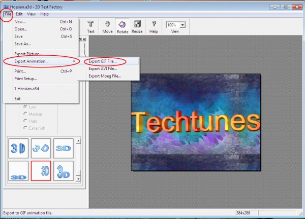 আজ আমি আপনাদের এমন ১টি সফট উপহার দিব যা দিয়ে আপনি আপনার লেখাকে 3D Gif এনিমেশনে রুপান্তর করতে পারবেন! 3D Text Factory এমন একটি সফট যা দিয়ে আপনি 3D লেখার এনিমেশন তৈরি করতে পারবেন, প্রথমে এখান থেকে ডাউনলোড করুন। তারপর চালু করুন।
