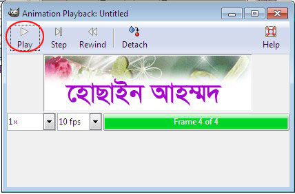 আর এনিমেশন টি কি রকম হল তা দেখতে Filters> Animation > Playback বাটনে ক্লিক করে Play বাটনে ক্লিক করে দেখুন ।