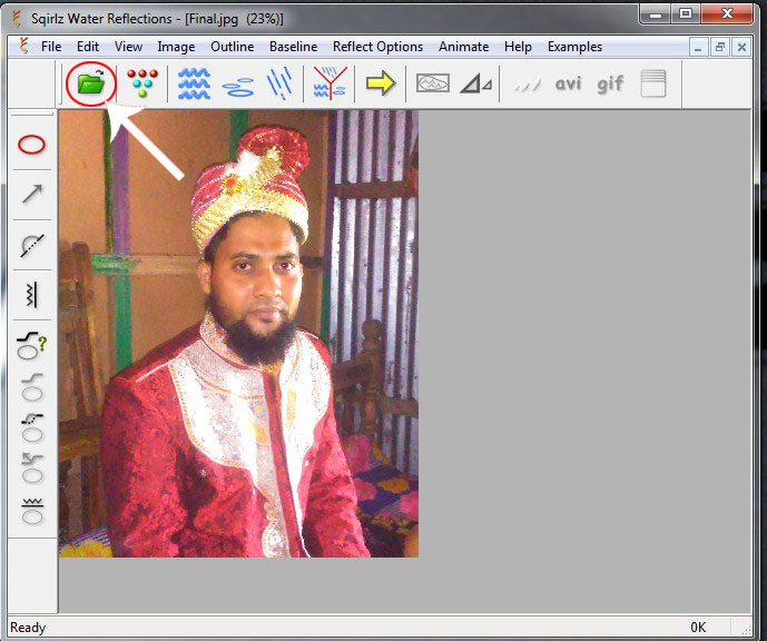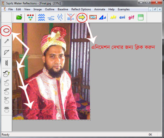 এখন বাম সাইটের টুলবার থেকে যে কোণ একটি টুল সিলেক্ট করে ছবির যে সাইটে ওয়াটার রিফ্লেকশন ইফেক্ট দিতে চান, সে সাইটে ক্লিক করে সিলেকশন করুন