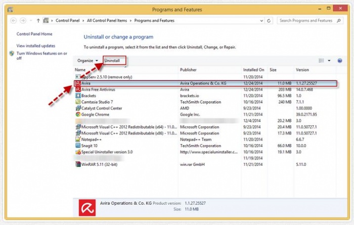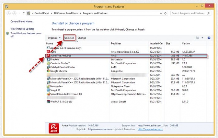 কন্ট্রোল প্যানেল(Control Panel): “Special Uninstaller” দিয়ে কাজ করার পর আপনার পিসি কন্ট্রোল প্যানেল হতে “AVIRA ANTIVIRUS 2015” সম্পূর্ন ভাবে রিমুভ করুন।