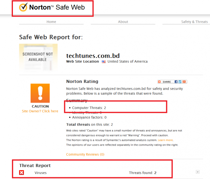 কয়েকটি রিপোর্ট আপনাদের জন্য Norton Antivirus এর নাম তো শুনেছেন নিশ্চই তার একটি ফলস ভাইরাস ওয়ারনিং আমদের প্রাণ প্রিয় টেকটিউনস নাকি আনসেফ।
